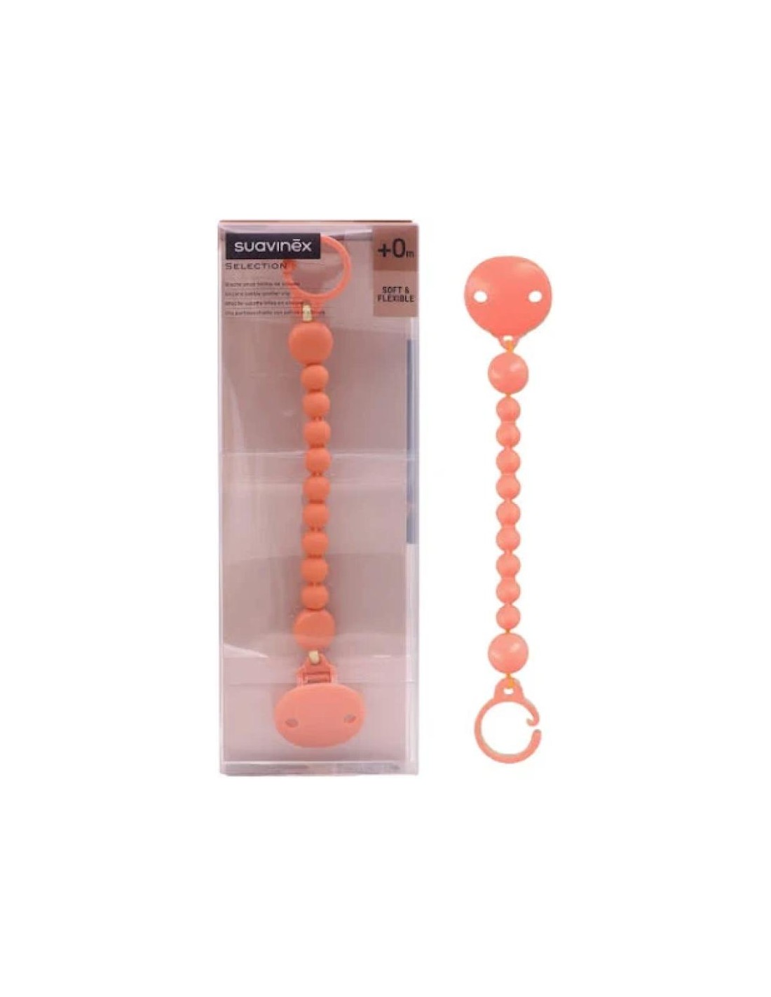 Broche Suavinex Bolitas Silicona Essence: Moderno, seguro y funcional broche para chupetes, diseñado para bebés desde 0 meses. Fabricado en silicona de grado alimentario, suave y cómodo, con diseño ergonómico que protege la piel sensible. Fácil de enganchar a la ropa con sistema de pinza, ideal para usar en casa o en paseos. Colección Essence, libre de BPA y aprobado por expertos en pediatría y dermatología.